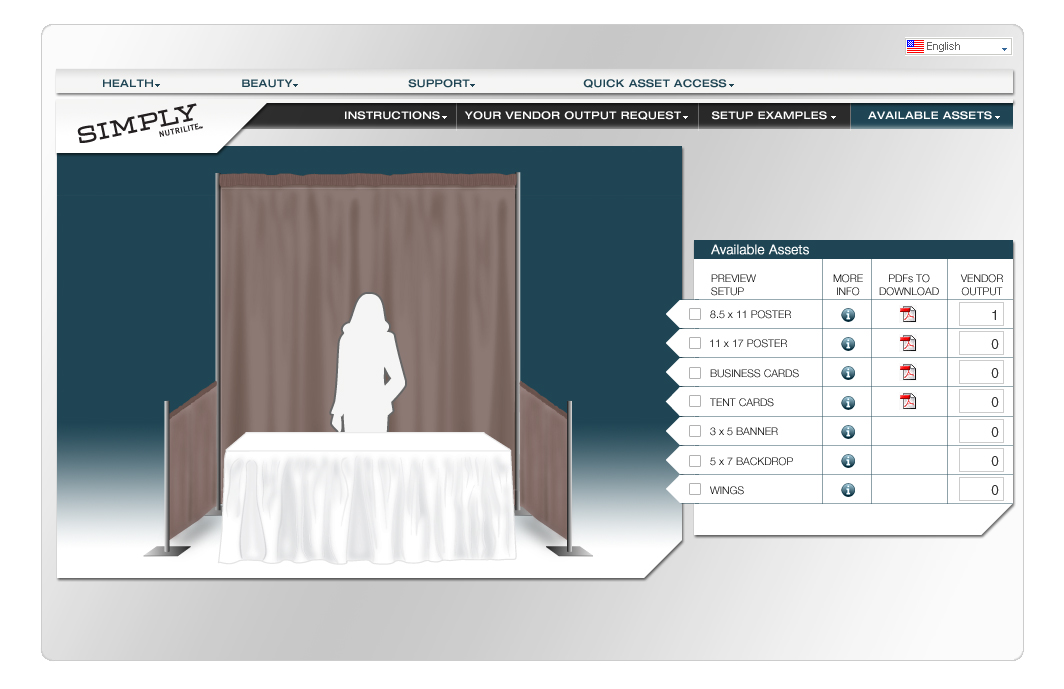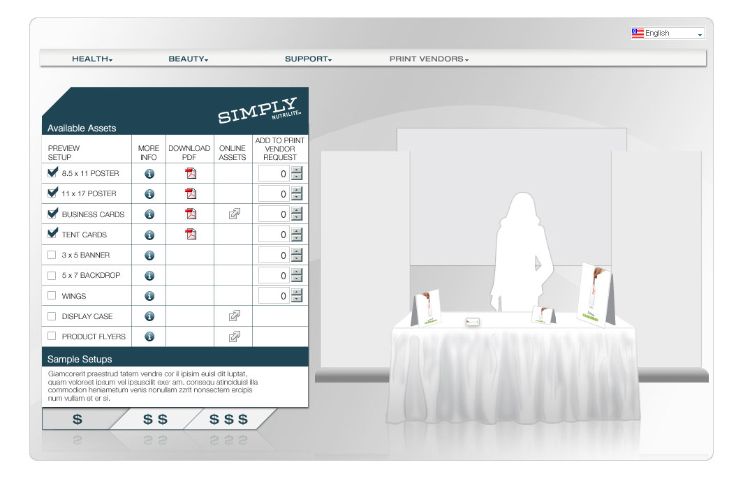 Allowed user to design an expo stand based on product theme and supporting materials. Then place an order with local vendors to have support materials manufactured.